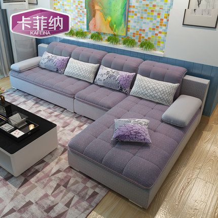 卡菲納簡(jiǎn)約現(xiàn)代布藝沙發(fā)大小戶型客廳家具轉(zhuǎn)角L型可拆洗組合沙發(fā)